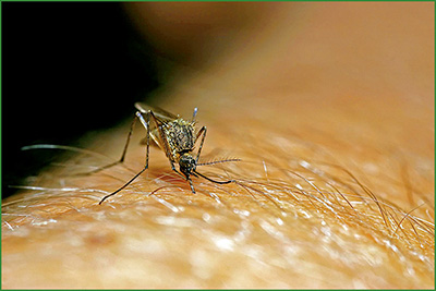 ● 白纹伊蚊(Aedes albopictus) 中小型黑色蚊种,有银白色斑纹。幼虫孳生于树洞、竹筒、石窝、旧轮胎及住宅附近积有雨水的缸、钵及假山盆景中。白纹伊蚊是我国登革热的重要媒介,还能传播乙型脑炎。